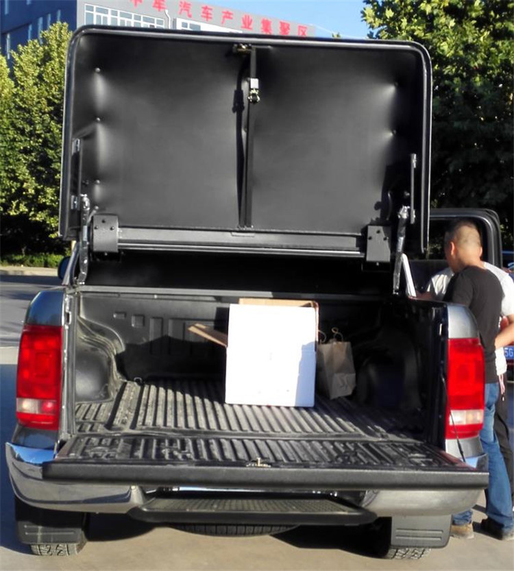 慶鈴達咖皮卡改裝鯊魚王多變體汽車智能皮卡后箱蓋,后蓋原車金屬冷板材質,鄭州日產電泳防銹技術,原車鑰匙智能搖控開啟,貨箱聯鎖防盜、防水,六個變化動作,皮卡后箱空間更大,既漂亮又安全實用。