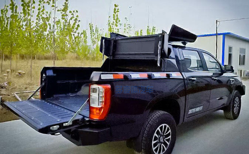 中興領主皮卡改裝鯊魚王多體變汽車智能皮卡后箱蓋,采用金屬冷板材質,日產電泳工藝防銹、防塵防水、防異響,聯鎖工藝,一體鎖止,防盜保證安全,后蓋支持原車鑰匙遙控開啟,其它后蓋沒有功能,六個變化動作,載貨空間更大,產品研發專利,全球銷售,海外出口。